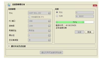 選擇HART MODEM所對(duì)應(yīng)的端口號(hào),注意:連接之前請(qǐng)安裝好HART MODEM的USB驅(qū)動(dòng)程序,若無驅(qū)動(dòng)請(qǐng)聯(lián)系錕鵬公司